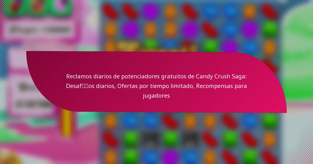 Los desafíos por tiempo limitado actuales en Candy Crush Saga ofrecen a los jugadores oportunidades únicas para ganar recompensas exclusivas y mejorar su experiencia de juego. Estos eventos suelen presentar tareas específicas que deben completarse dentro de un plazo establecido, fomentando la participación activa y el juego estratégico.